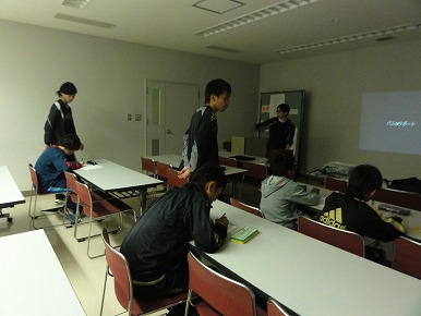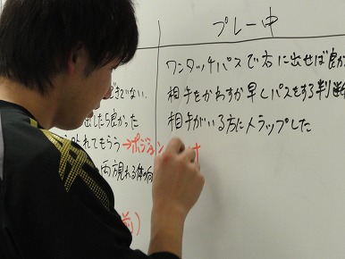Jリーグの失点シーンを見ながら各々分析を行いました。