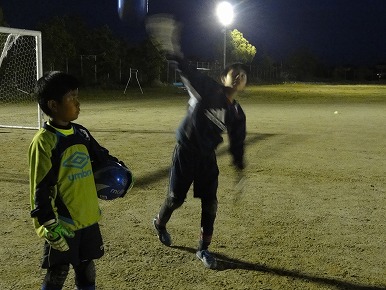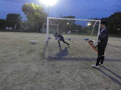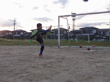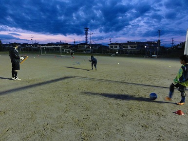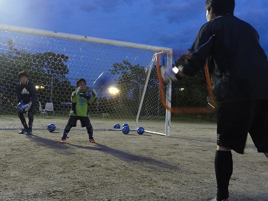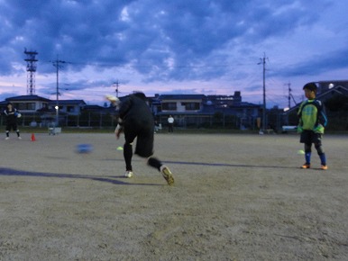 今日も早く来た選手からキックの練習をします。